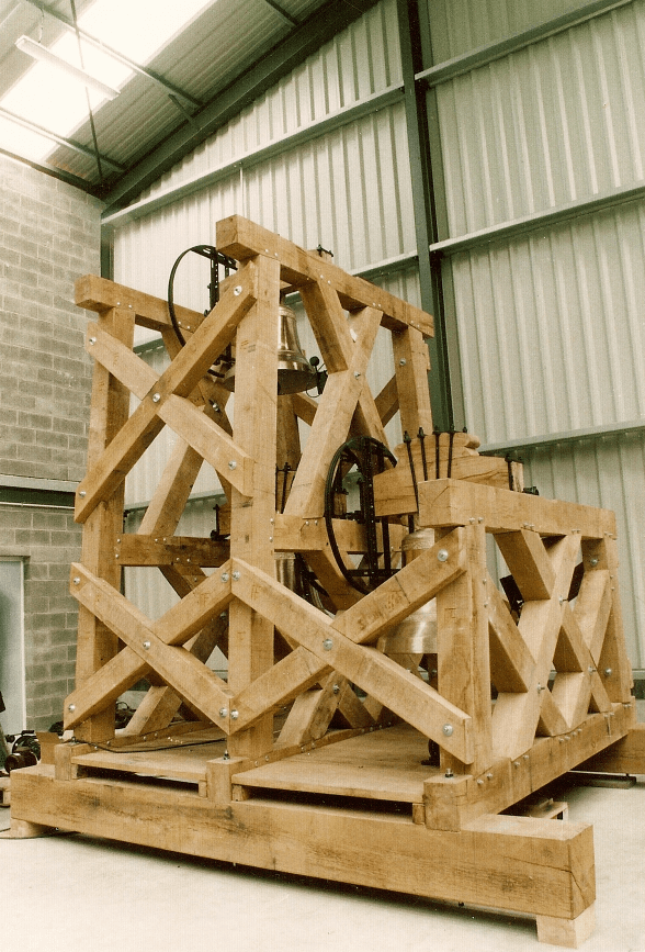 Le beffroi est une charpente de préférence en bois conçue pour amortir les efforts dynamiques des cloches en volée.