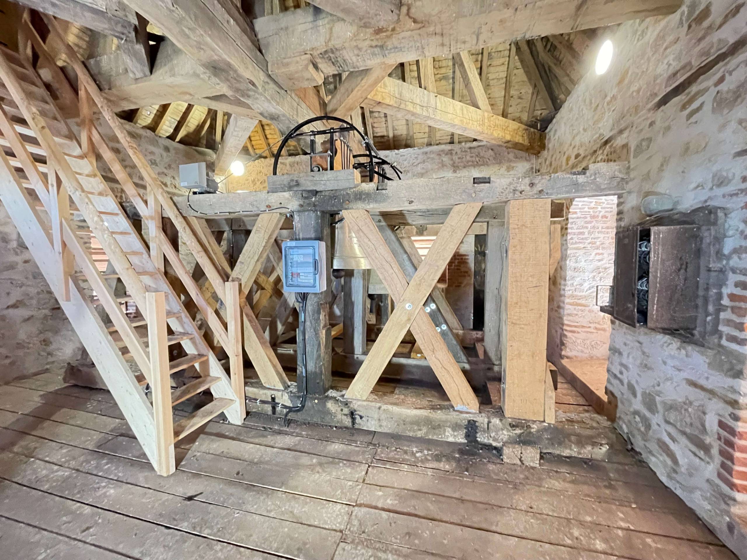 Travaux de planchers “salles des cloches”, échelles et escaliers d’accès aux cloches pour garantir une intervention en sécurité.